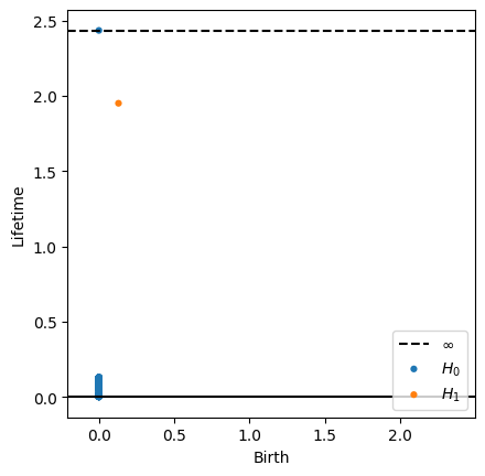 Calculamos la (homología persistente) del sliding-window embedding que evoluciona en el tiempo.