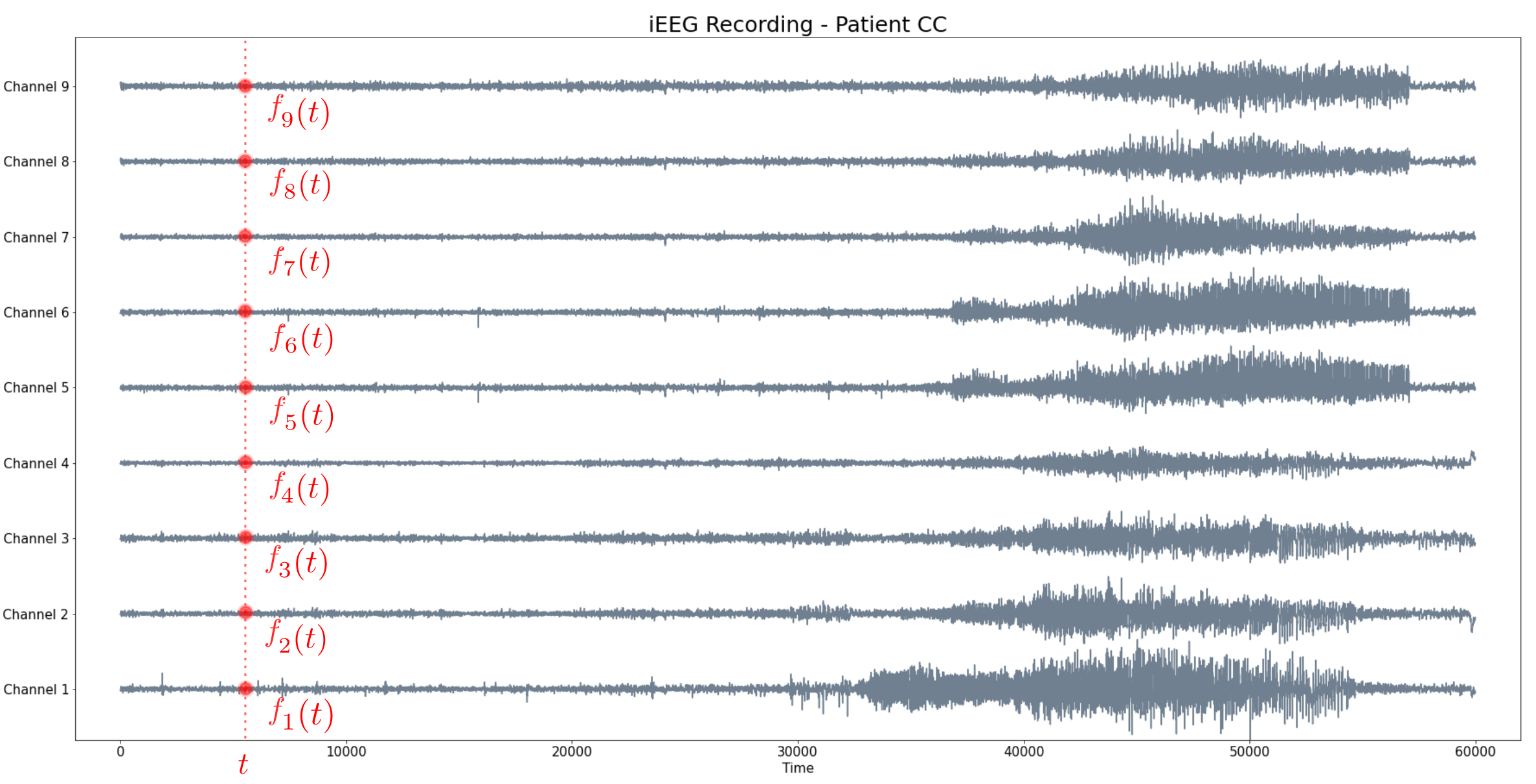 Dado un tamaño de ventana $W$, calculamos para cada $t\in [W,T]$ el embedding de $f_1, f_2, \dots f_N:[t-W, t]\to \mathbb{R}$ en $\mathbb{R}^N$.
